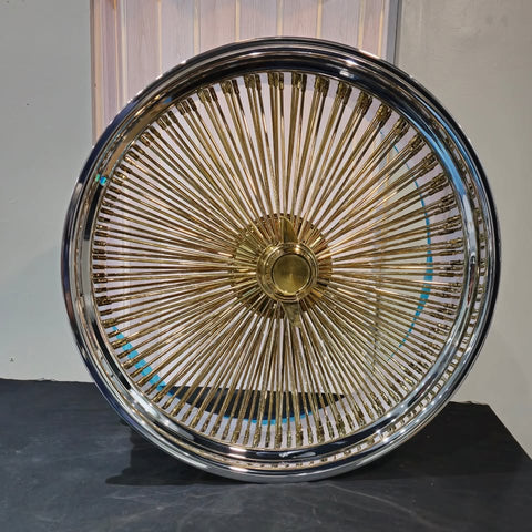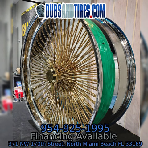 26 Inch 24k Gold Center Chrome Lip Wire Wheels Chevy Caprice & Impala 26 Inch Donk Rims 7 Inch Lip Wires Rims & Tires , SET OF 4 (Custom widths available, call for details)
