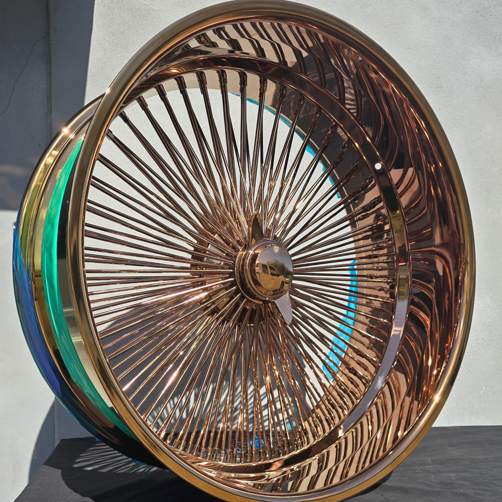 26 Inch 24k Gold Center Chrome Lip Wire Wheels Chevy Caprice & Impala 26 Inch Donk Rims 7 Inch Lip Wires Rims & Tires , SET OF 4 (Custom widths available, call for details)